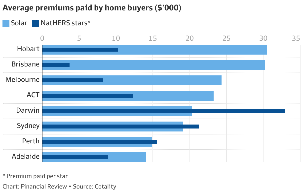 澳洲金融时报:屋顶太阳能能让房屋升值至少2.3万澳元 如果你一直在等一个安装屋顶太阳能的理由,这可能就是它了。 就像游泳池或网球场一样,它能让房子的价值上升。 一项分析超过600万笔房产交易的新研究显示,安装屋顶太阳能的澳洲住宅,平均售价比未安装的高出23,107澳元。 这项研究由房产数据公司Cotality完成。结果显示,在各大首府城市中,霍巴特的增值幅度最大,安装太阳能可为房价增加5.4%,约30,459澳元。其次是布里斯班,也超过3万澳元,而悉尼和墨尔本的平均增值分别为19,179和24,369澳元。 澳洲有多少房屋安装了太阳能? 全国约29%的住宅,约420万套安装了屋顶太阳能,但各地差异明显。珀斯、阿德莱德和布里斯班安装率超过40%,霍巴特则低于20%,悉尼和墨尔本约为25%。 屋顶太阳能的普及速度已超越阿尔巴尼斯政府的可再生能源目标。澳洲家庭和小型企业的发电量预计将超过2030年目标3.3%。开发商也开始把屋顶太阳能当作标准配置,而非可选附加项,尤其是在新住宅区。 Cotality的报告指出,这种增值效果在各类市场中都存在,并不限于高收入或高房价地区。 安装太阳能要花多少钱? 太阳能比价网站Solar Choice首席执行官赛克斯(Jeff Sykes)表示,屋顶太阳能系统的价格取决于容量大小和地理位置。安装最常见的6千瓦系统,政府补贴后平均成本约为5800澳元。大户型需要的10千瓦系统则约9130澳元。 考虑初始成本后,业主在出售房屋时,平均仍可获利13,977至17,307澳元,还不包括平时节省的电费。赛克斯表示,屋顶太阳能系统一般在三到五年内即可通过节能回本。 节能住宅如何增加房产价值? Cotality的报告分析了截至2025年4月的12个月内的交易数据,发现买家平均愿意为房屋能源评级系统(NatHERS)中每增加一颗星多支付10,560澳元。 NatHERS以十星为满分,衡量建筑热能效率,例如隔热、玻璃窗和朝向设计等。各地溢价差异很大,从达尔文每星32,946澳元,到布里斯班仅3,749澳元。 约70%的澳洲住房能源评级低于四星,其中42%的房屋仅有1到2星,只有0.4%的房屋达到7至8星,几乎没有更高等级。 目前,只有首都堪培拉要求在出售或出租时披露能源评级。新南威尔士州政府也宣布,将逐步要求在买卖与租赁合约中披露住宅能源等级。 Cotality银行与金融高级主管科德(Tom Coad)表示,未来买家将能在房产网站上像筛选卧室、浴室数量一样,筛选屋顶太阳能、能源评级和家庭电池等特征。 尽管报告尚未评估家庭电池的溢价,科德认为它“毫无疑问也会提升房屋价值”。 赛克斯补充,目前仅约10%的太阳能住宅配备家庭电池,但自7月1日联邦政府启动电池补贴后(补贴约30%安装成本),安装量正迅速增长。 赛克斯说:“自补贴计划宣布以来,电池咨询与安装量出现巨大跃升”。 目前全国17千瓦标准家庭电池在补贴后平均售价约为14,722澳元。 ![]() ![]() ![]() 来源: https://www.afr.com/wealth/perso ... ome-20250930-p5myzp Michelle BowesWealth reporter Oct 6, 2025 – 5.00am 5 min |